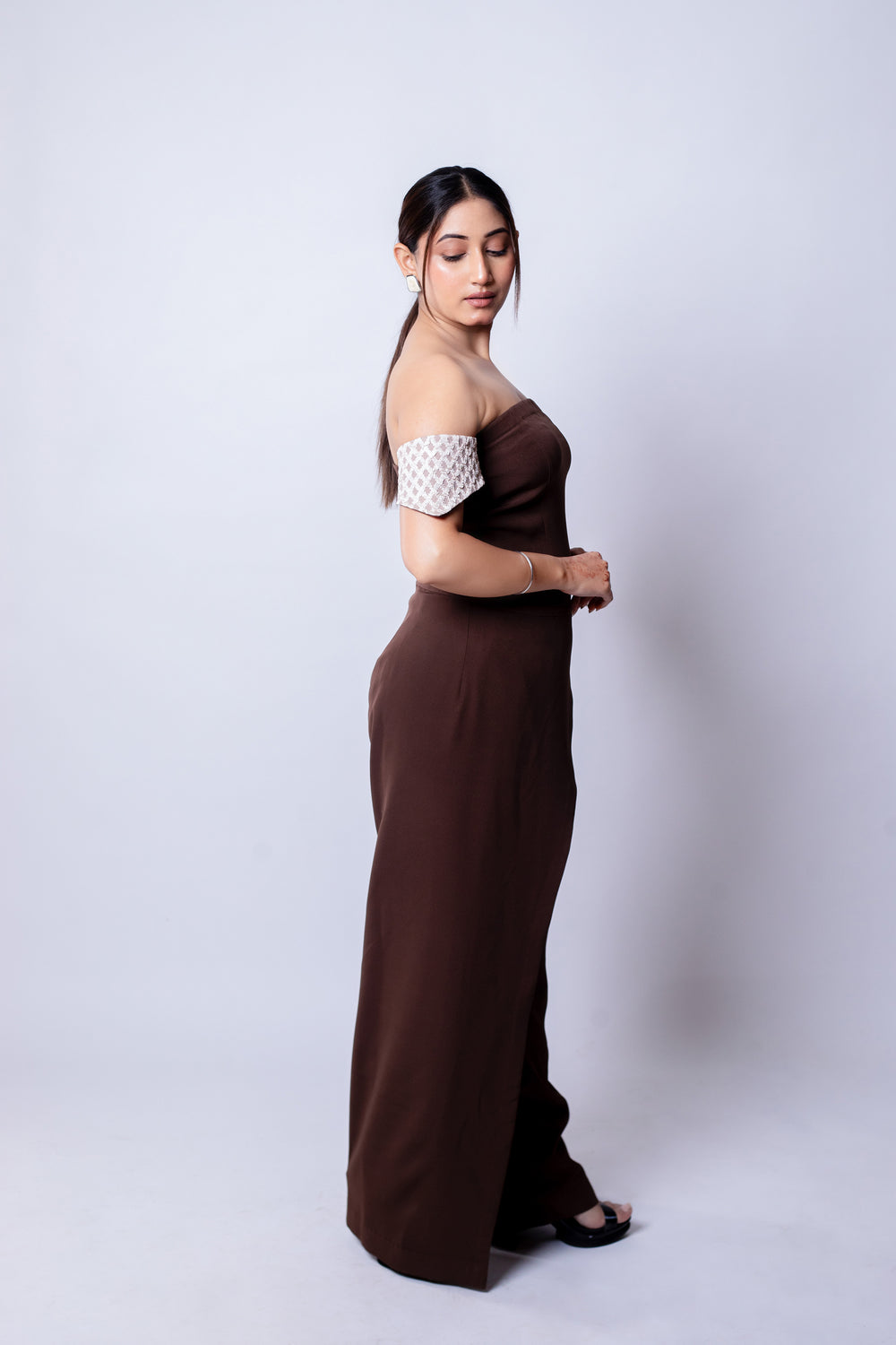 The Sable Wrap Co-ord Set blends sculptural minimalism with fluid elegance in a rich sable brown tone. The slant-cut drape pants create graceful movement with a modern edge, offering a sleek, elongated silhouette. Paired with a contemporary tube top enhanced by textured sleeve settings, this co-ord combines clean lines with subtle depth — delivering effortless sophistication for evenings out, intimate dinners, and elevated gatherings.
